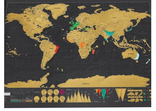 Antwort 3: Die oberste Schicht der Karte ist mit goldenen Folienflocken bedeckt, die leicht mit einer Münze abgekratzt werden können, um neue Länder und Details sichtbar zu machen.